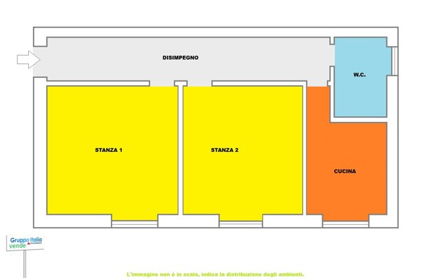 L'immobile, di 67 m² è composto da un grande ingresso/disimpegno, 2 comode stanze, una cucina abitabile e un bagno con doccia