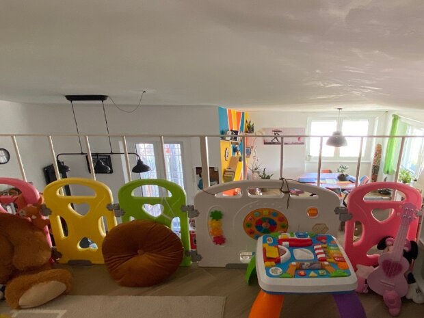 Appartamento in buone condizioni già diviso in 2 unità immobiliari ben distinte, che offre un ingresso, ampi disimpegni soppalcati, 5 camere, una cameretta, una cucina, due bagni, un ripostiglio e un balcone.
