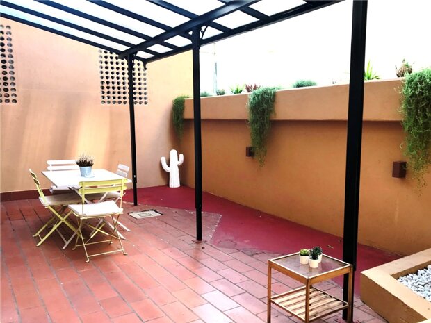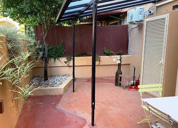 Appartamento in ottime condizioni, che offre un soggiorno con cucina a vista arredata, una camera da letto arredata, un bagno e un giardino pavimentato di 30 mq.