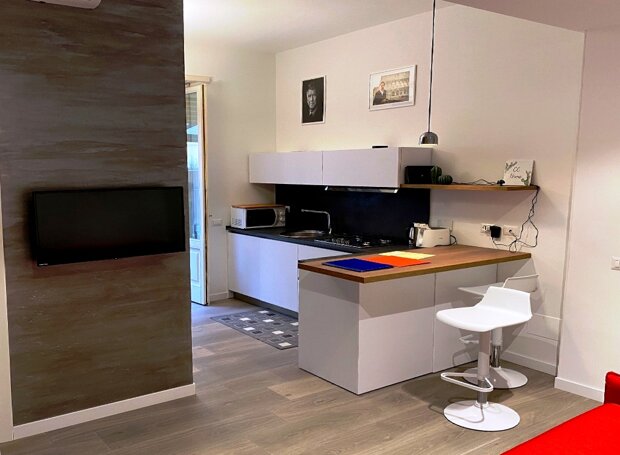 Appartamento con entrata indipendente, completamente ristrutturato, che offre una piccola zona living a vista con angolo cottura, una camera e un bagno.