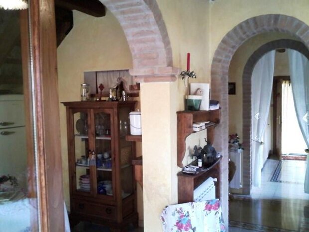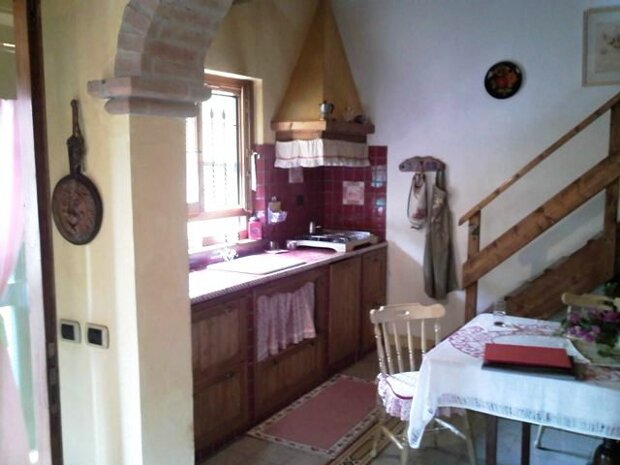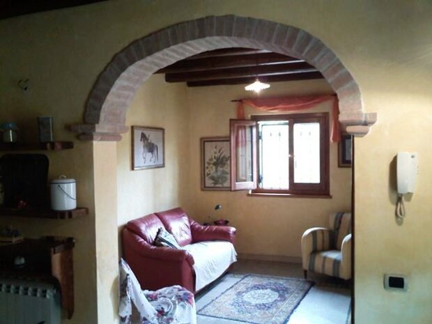 Porzione di casale d'epoca ristrutturato su due livelli, che offre al piano terra un salone con cucina a vista, un disimpegno, un ripostiglio, una grande stanza, un bagno ed un ampio patio; al primo piano una grande stanza con bagno. Annessa al casale c'è una dependance composta da una stanza ed un bagno. Completa la proprietà un giardino di 300 mq con cancello carrabile dal quale si può accedere con le automobili.