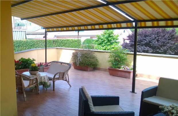 Appartamento su 2 livelli, in ottime condizioni, che offre un ampio soggiorno, una cucina, 2 camere da letto, 2 bagni, una sala hobby con predisposizione per angolo cottura e camino, un box auto, un terrazzo di 50 mq ed un giardino di 100 mq.