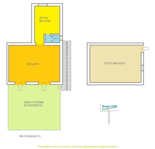 Piano terra - fronte strada - 2 vetrine - retronegozio - sottonegozio - bagno - cortile antistante di 45 mq.
