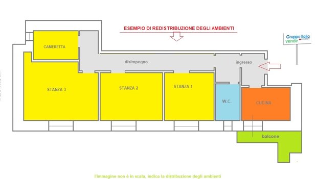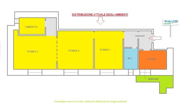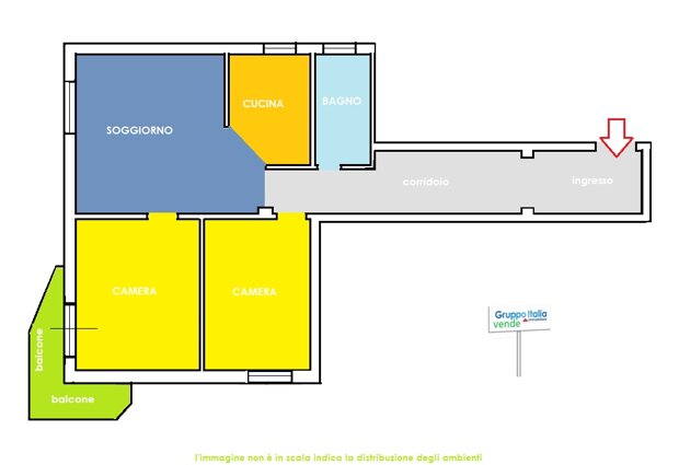 Appartamento in buone condizioni, che offre un ampio ingresso abitabile aperto sul salone, una cucina abitabile, 2 grandi camere, un bagno e un balcone.