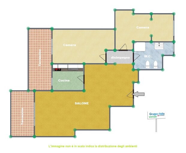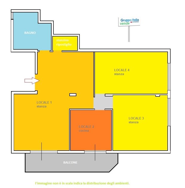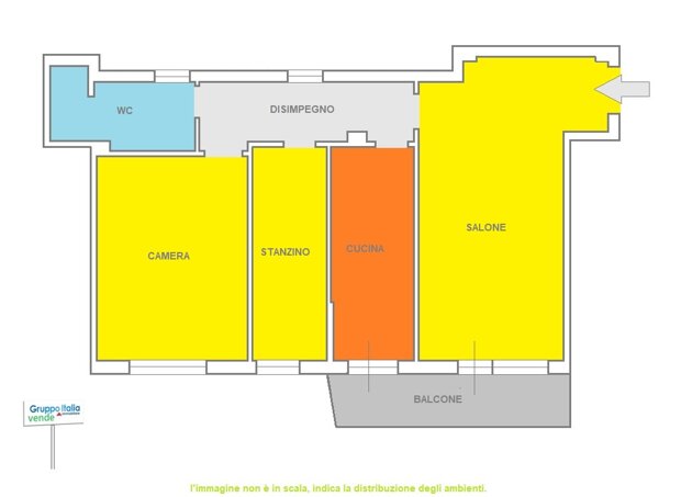 Appartamento in buone condizioni, che offre un salone a vista, un disimpegno con finestra, una cucina, una ampia camera, una stanzetta, un bagno e un balcone.