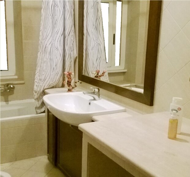 Appartamento in buone condizioni, che offre un ingresso, 3 comode camere, una cucina, 2 bagni e un balcone.