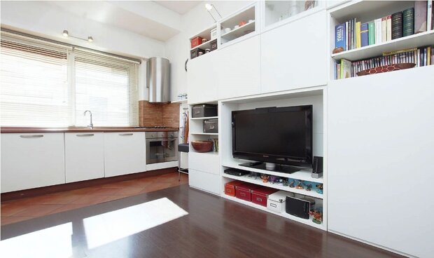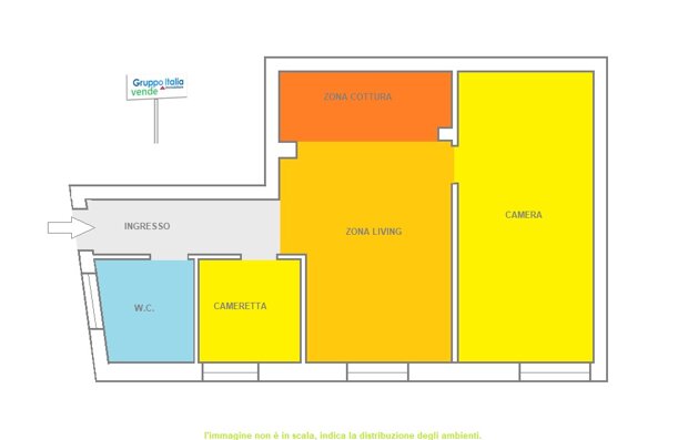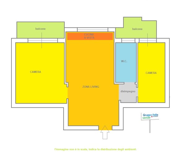Appartamento in buone condizioni, che offre una ampia zona living con cucina a vista, un disimpegno, 2 camere, un bagno e 2 balconi.