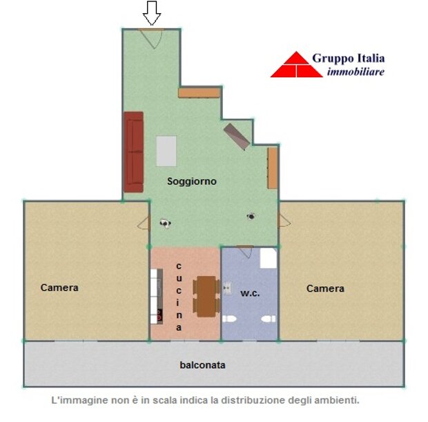 Appartamento in ottime condizioni, con entrata indipendente, che offre un ingresso, una comoda zona living con cucina a vista, una camera da letto, una cameretta e un bagno.