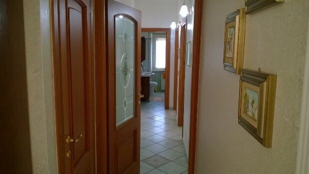 Appartamento in ottime condizioni, che offre un ingresso, tre ampie camere, un disimpegno, una cucina abitabile e 2 bagni.