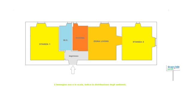 Appartamento in buone condizioni di manutenzione, che offre una zona living a vista, un cucinotto, 2 camere e un bagno.