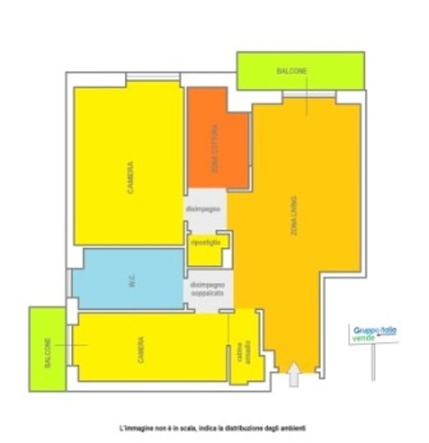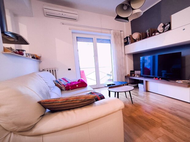 appartamento in ottime condizioni di manutenzione, che offre una ampia, un cucinotto, due disimpegni di cui uno soppalcato, una camera da letto, una cameretta con cabina armadio, un ripostiglio/lavanderia, un bagno e 2 balconi.