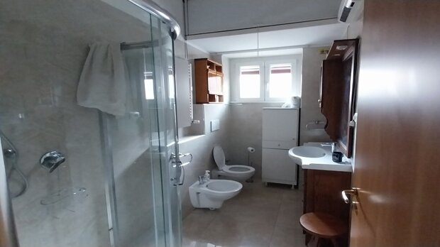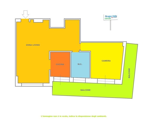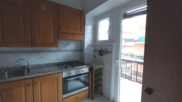 Ampio ingresso/ disimpegno, cucina abitabile, 2 comode stanze, un bagno, uno stanzino ripostiglio e un balcone.