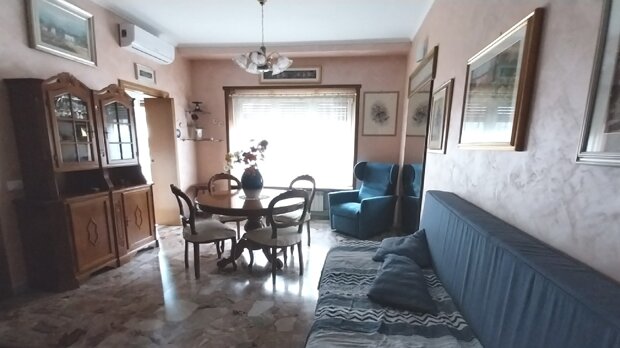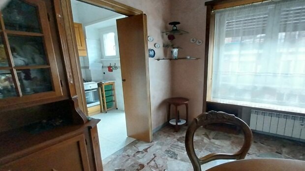 Ampio ingresso, cucina abitabile, 2 grandi stanze, disimpegno, un bagno, stanzino ripostiglio e un balcone.