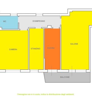 Appartamento con 2 camere una stanzetta cucina bagno e balcone