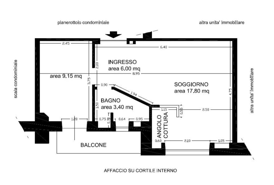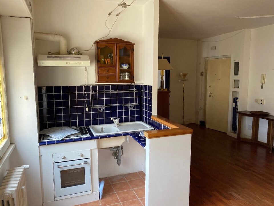 Appartamento che offre una ampia zona living con cucina a vista, una cameretta, un bagno e un balcone.
