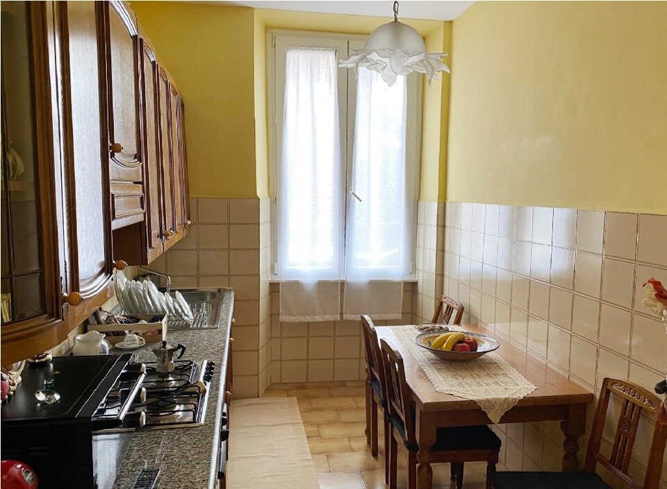 Appartamento che offre un ampio ingresso, un disimpegno con finestra, due comode camere (di cui una con 2 finestre) una cucina abitabile e un bagno.