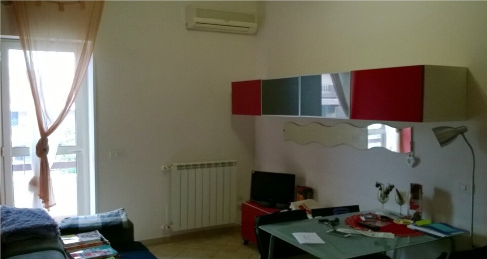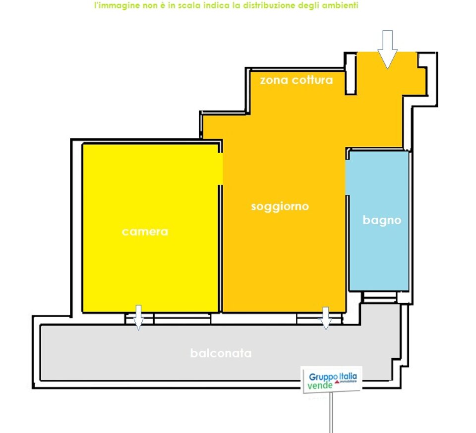Appartamento con affaccio panoramico, che offre un ingresso, un ampio soggiorno con zona cottura a vista, una camera, un bagno ed una ampia balconata.