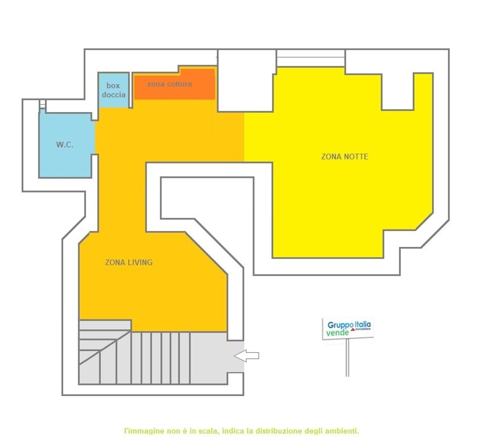Appartamento Open Space che offre una zona living e una zona notte ben separate e un bagno.