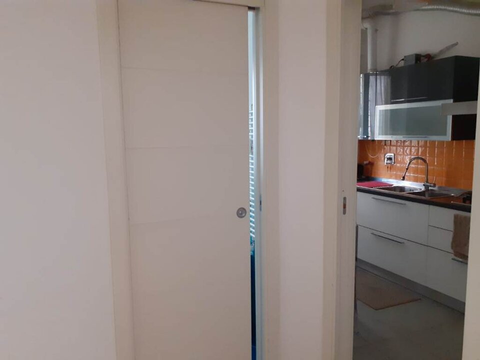 Appartamento che offre un ampia zona living a vista, un disimpegno con soppalco, una grande camera da letto, una cucina abitabile, un bagno e un ripostiglio/lavanderia.