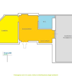 Appartamento 2 camere cucina a vista bagno e giardino pavimentato