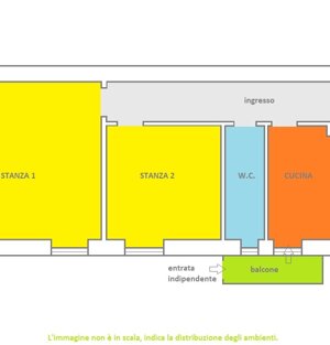 Appartamento con doppia entrata (una indipendente) ingresso 2 stanze cucina abitabile bagno e balcone