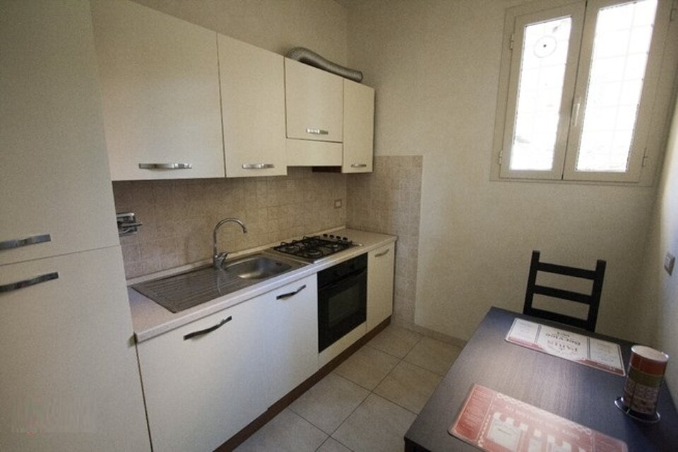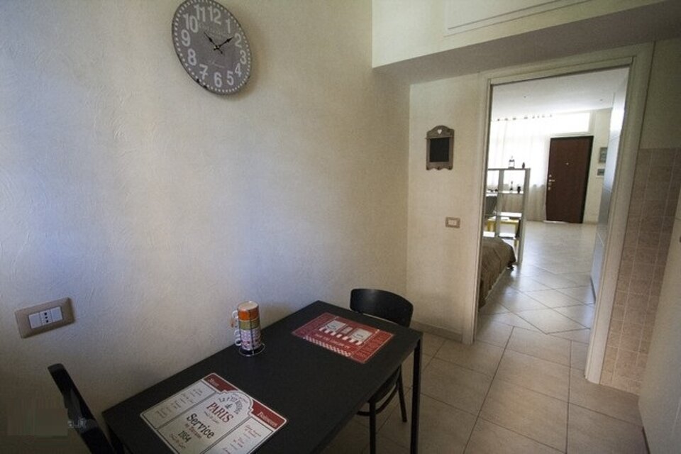 Appartamento che offre un ampio salone, una cucina abitabile, un bagno ed un cortiletto antistante l'entrata da utilizzare anche come posto auto e posto moto.