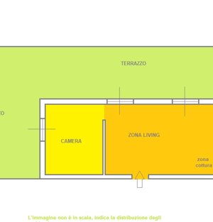 Attico panoramico con zona living zona cottura camera da letto bagno e terrazzo
