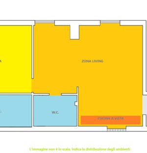 Appartamento con grande zona living camera cucina e 2 bagni
