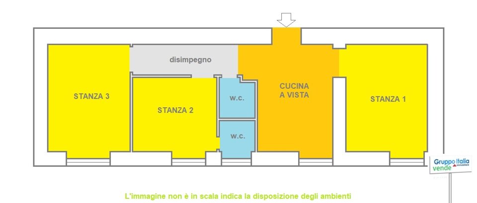 Appartamento che offre una ampia cucina a vista, un disimpegno soppalcato, tre comode camere e due bagni.