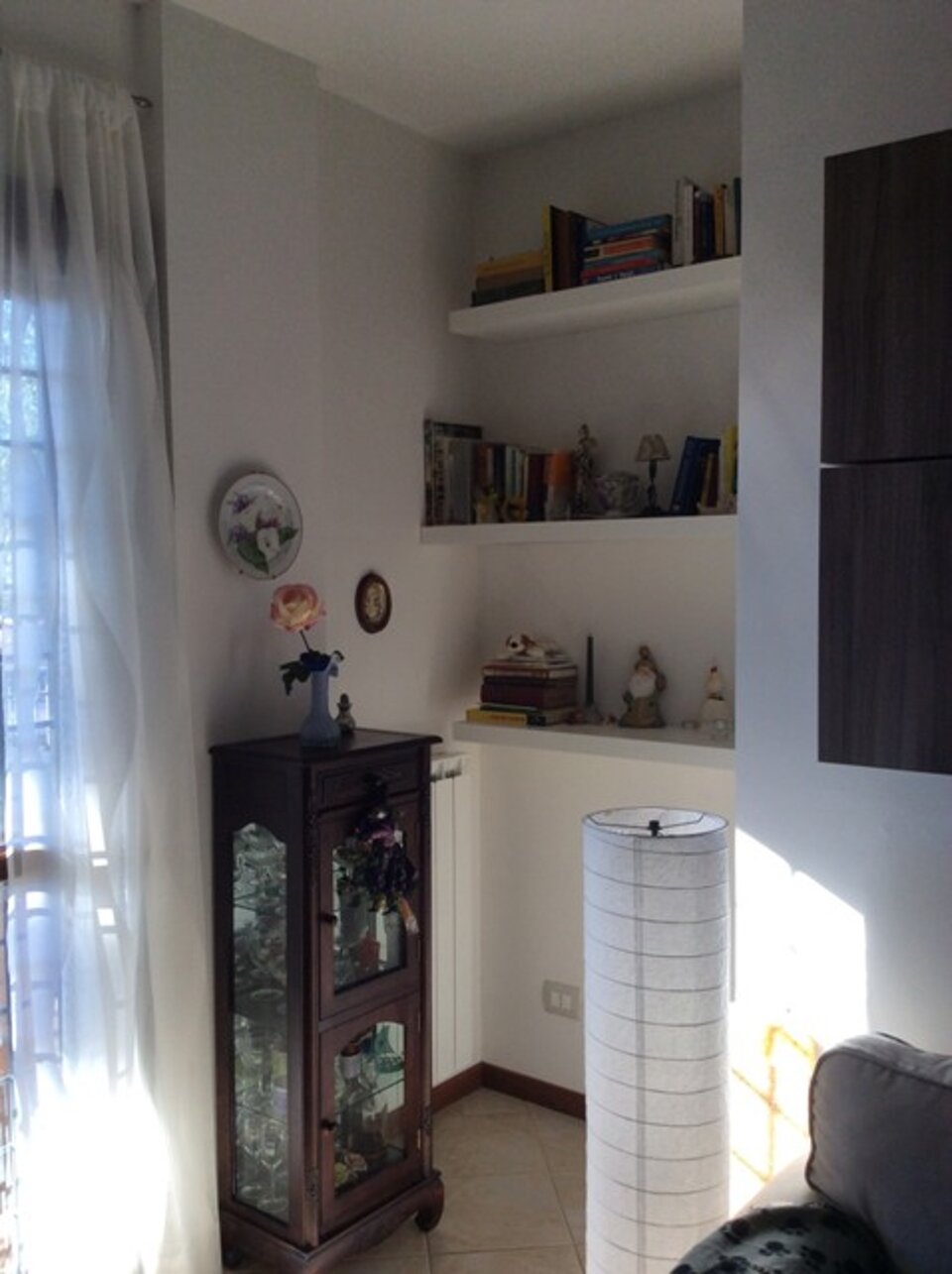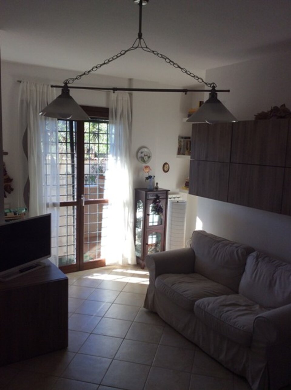 Appartamento bilivelli, in ottime condizioni, che offre un salone con cucina a vista, tre camere, due bagni, e un giardino.